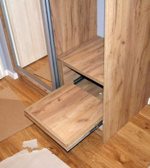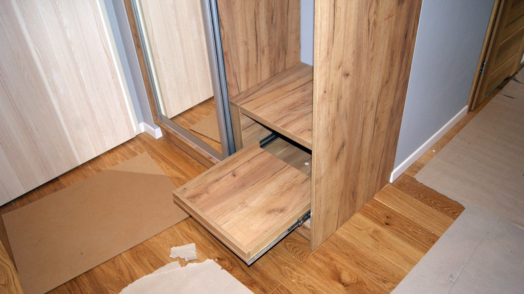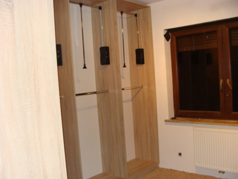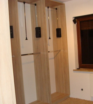 Jednak by zabudowa wnękowa dobrze spełniała swoją funkcję, musi zostać wyposażona w systemy ułatwiające organizowanie przechowywanych tam przedmiotów i udogodnienia w codziennym korzystaniu. Mebel może więc mieć dowolnie umieszczone drążki przeznaczone na wieszaki, półki, miejsce na koszyki czy otwory na gniazdka elektryczne. Mogą się także Państwo zdecydować na systemy bezgłośnego otwierania szafy wnękowej, dla zwiększenia komfortu wszystkich domowników.