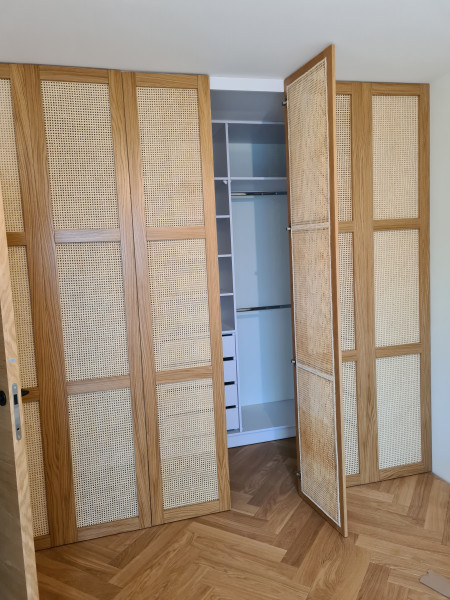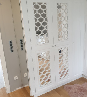 Mogą Państwo zadecydować o każdym szczególe szafy na wymiar – jaki ma mieć kolor, z jakiego materiału ma zostać skonstruowana, jak mają wyglądać uchwyty i zawiasy. Dzięki szerokiej ofercie oklein zabudowa będzie pasować do każdej aranżacji wnętrz. Możliwe jest stworzenie zarówno szafy przeszklonej, minimalistycznej, a także efektownie podświetlanej.